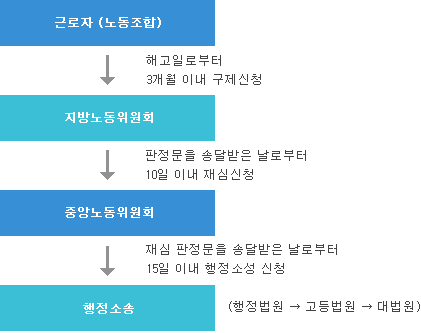 | 해고란 사용자가 근로자의 의사와는 상관없이 근로계약을 일방적으로 종료시키는 것을 말합니다. 해고는 근로자와 그 가족의 생계에 커다란 위협이 되는 것이므로 『근로기준법』에서는 근로자를 해고할 경우에는 정당한 사유와 절차를 갖출 것을 요구하고 있습니다. 이러한 정당성이 없이 행하여진 해고는 "부당해고"가 되고, 해고를 당한 근로자는 노동위원회에 부당해고 구제신청을 할 수 있습니다. |
